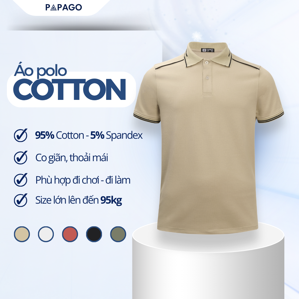 Áo polo cao cấp PAPAGO nam Trung niên vải cotton kim cương form rộng - P25PLCT003