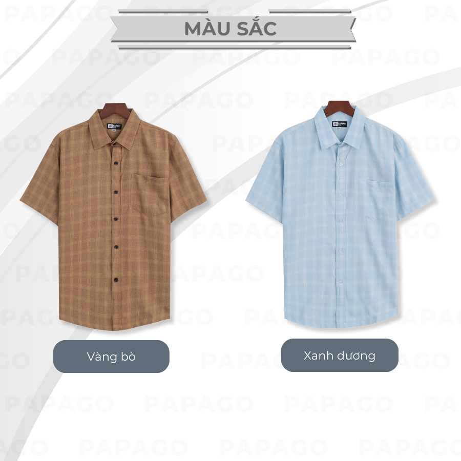 Áo sơ mi nam trung niên PAPAGO tay ngắn lai ngang sọc caro vải xô đũi - P23SNCR002