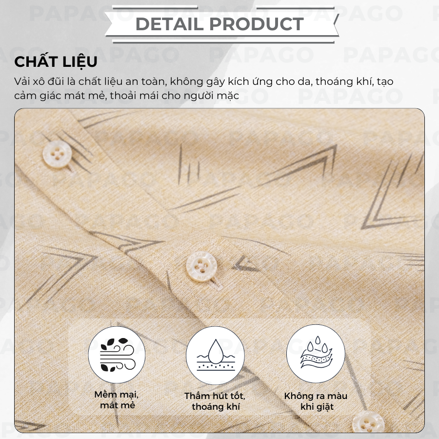 Áo sơ mi nam trung niên PAPAGO tay ngắn vải xô đũi thoáng mát lai ngang in họa tiết - P25SNHT012