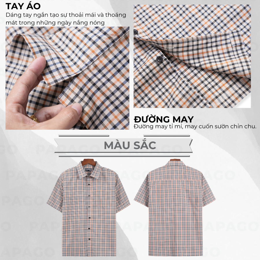 Áo sơ mi sọc caro nam Trung niên PAPAGO tay ngắn lai ngang - P25SNCR012