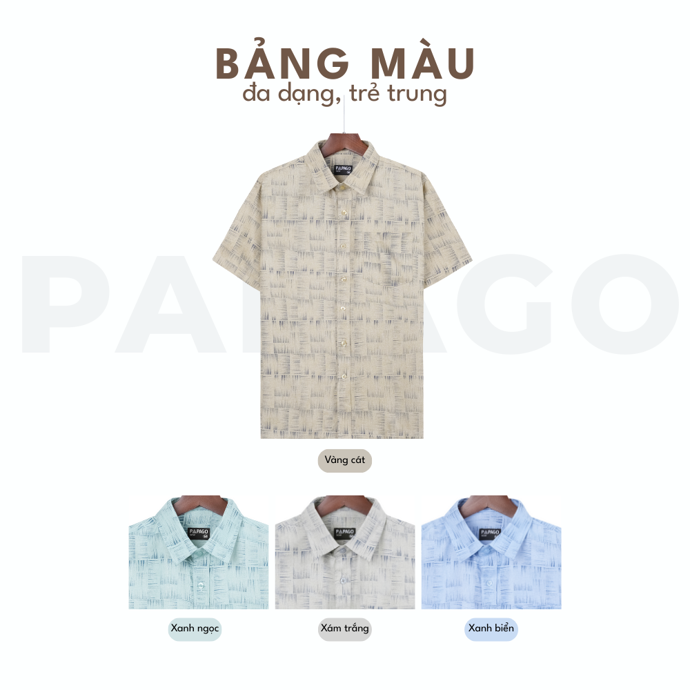 [MỚI] Áo sơ mi nam trung niên PAPAGO vải xô đũi in họa tiết tay ngắn lai ngang - P25SNHT014