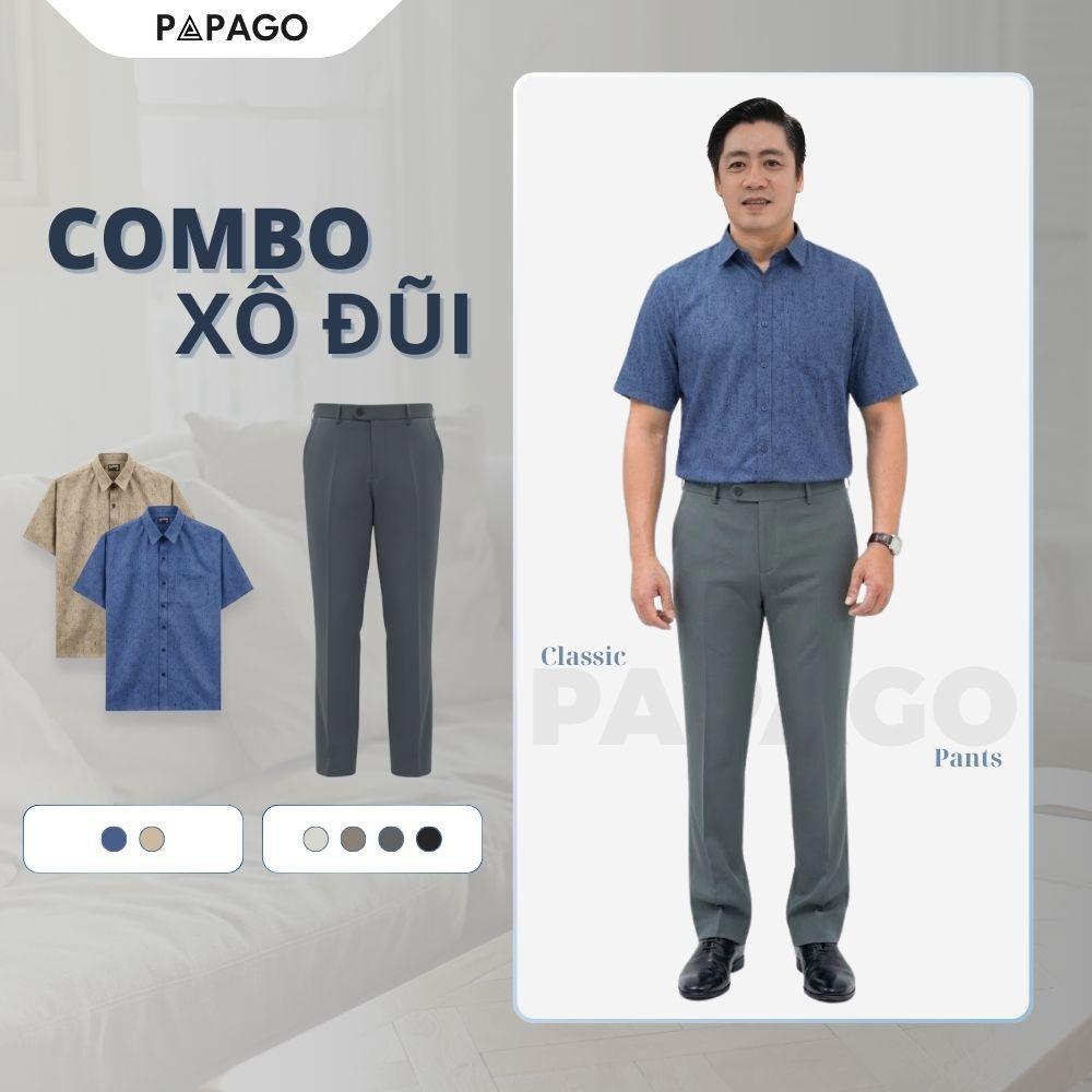 [MỚI] Combo Áo Sơ Mi Quần tây Nam Trung Niên PAPAGO Xô Đũi Lịch Sự Đơn Giản Sang Trọng - CB002